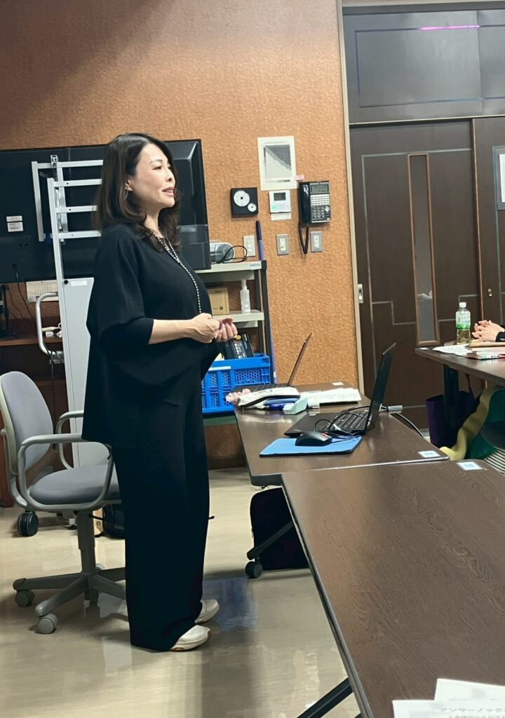 O curso, organizado pela Prefeitura de Yamanashi, chama-se “Inglês para adultos que trabalham” e, mais uma vez, aproveitei um pouco do tempo de fala da Kaori para conversar um pouco com os alunos sobre minhas experiências trabalhando no Japão como estrangeira.